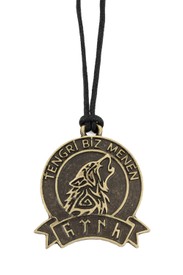 Halskette für Herren mit Anhänger 'Tengri Biz Menen' Wolf - Schwarze Schnur